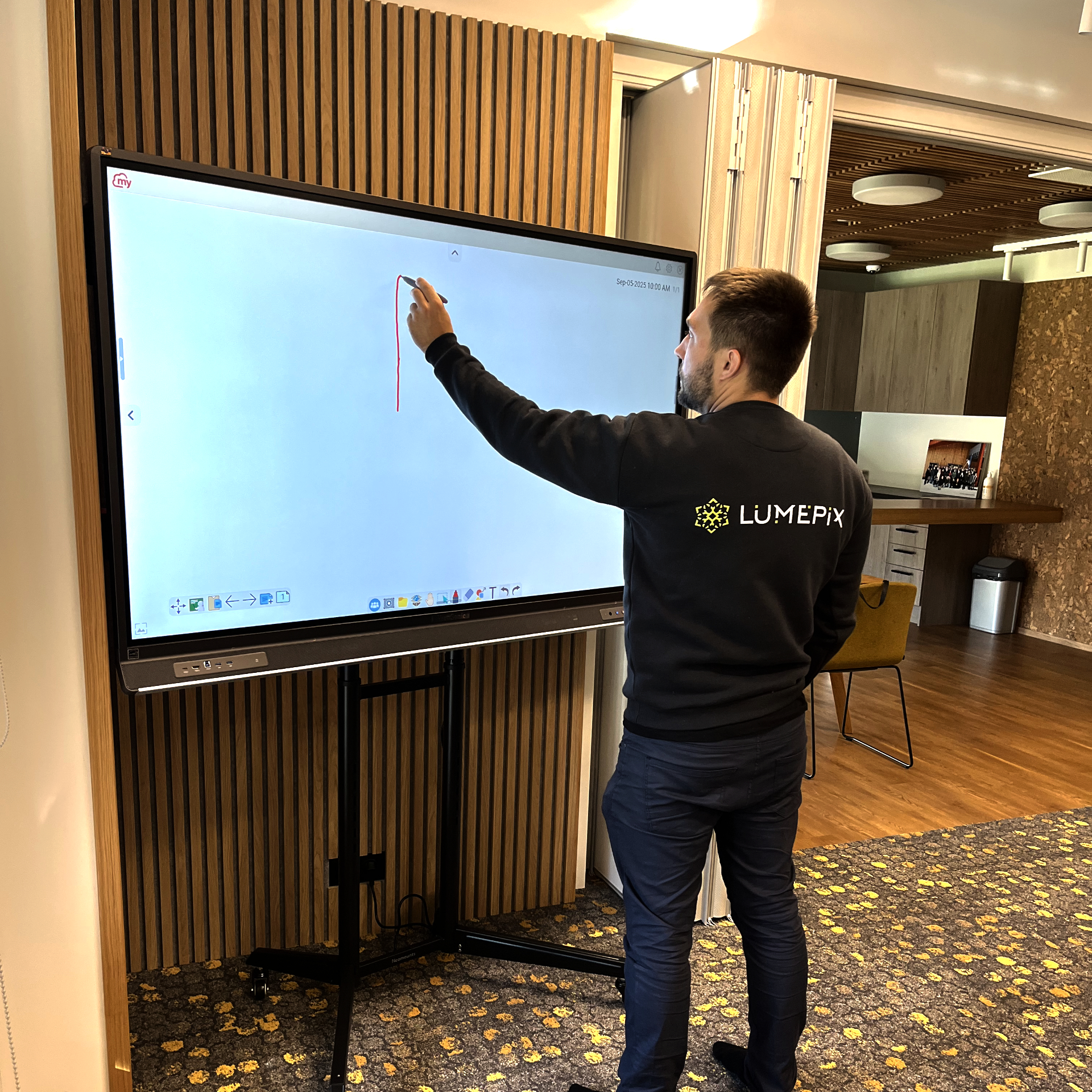 Eesti Geoloogiateenistuse Arbavere jaama konverentsiruumi paigaldas Lumepix kaasaegse 65-tollise ViewSonic MyViewBoard interaktiivse puutetundliku ekraani, mis ühendab endas infotahvli, koolitustehnika ja koosolekute lahenduse.